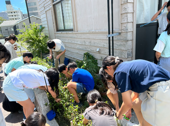 夏休み明け、6年生が藍の茎を刈り取りました。