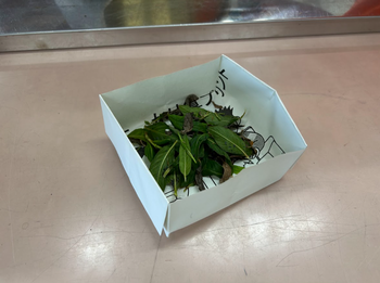 今回は茎のみでお茶を作りました。その方が甘みがあるそうです。