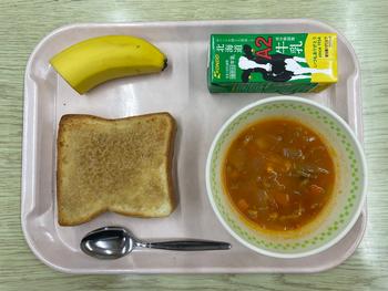 セサミトースト マンハッタンクラムチャウダー バナナ 牛乳