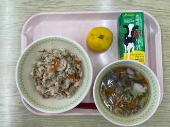・給食室の先生より「ミートソースの日は、口の周りを真っ赤にして