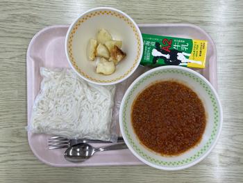 ソフト麺ミートソース ベイクドポテト 牛乳