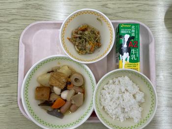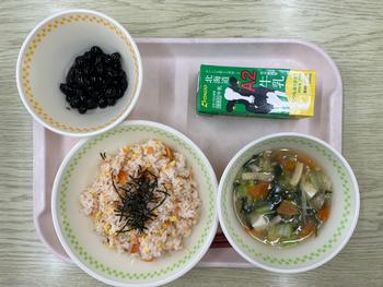 ・今日のスープは豆乳スープです。豆乳は、大豆を水につけてやわらかく