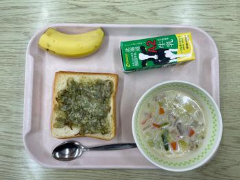 じゃこトースト 豆乳スープ バナナ 牛乳
