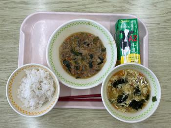 ご飯 プルコギ わかめと卵のスープ 牛乳