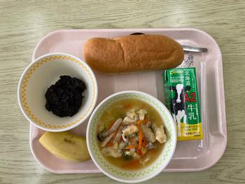 黒ごまあんパン すいとん汁 バナナ 牛乳