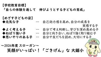 カテゴリー一覧 ホーム 学校運営協議会 2025年度 2024年度 保護者の方へのお知らせ 緊急災害時の対応 学校概要 校歌・校章 自然 学校だより 2026年度 2025年度 2024年度 学校活動 2026年度 2025年度 2024年度 いじめ防止対策基本方針 PTAのページ 2025年度 2024年度 沿革