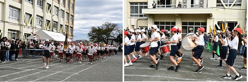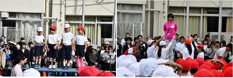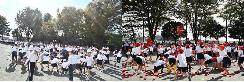 5年の徒競走に続いて1年の「だいすき パレード しゅっぱ~つ!」