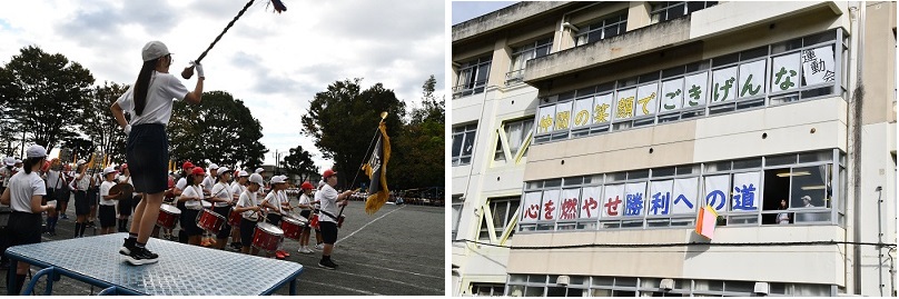 今年のスローガン 『仲間の応援でごきげんな運動会 心を燃やせ勝利への道』
