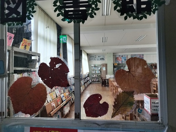 3階の図書館の窓ガラスに切り絵が張られているのに気づかれましたか??