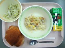 10月14日 こめこロールパン ポテトグラタン キャベツとじゃこのソテー 牛乳