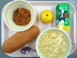 9月30日 ツナとごぼうのトースト まめとやさいのスープ くだもの 牛乳