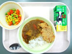 4月21日 カレーライス フルーツあえ 牛乳【1年生給食スタート】