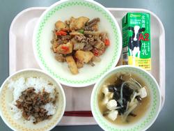 9月24日 ごはん ふりかけ とりにくとだいずのうまに みそしる 牛乳