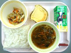 6月12日 ソフトめんかきたまうどん だいずのアーモンドあえ 牛乳