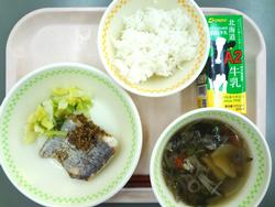 10月29日 ごはん さわらのごまみそかけ ゆでやさい けんちんじる 牛乳