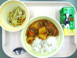 12月22日 みどりんカレーライス キャベツとしらすのソテー のみものセレクト(牛乳・コーヒー飲料・オレンジ果汁・ブドウ果汁)【2学期給食最終】