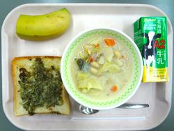 9月30日 ツナとごぼうのトースト まめとやさいのスープ くだもの 牛乳