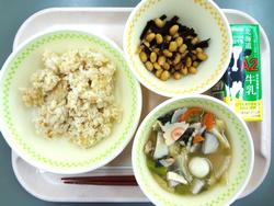 11月26日 とりにくとごぼうのおこわ アーモンドフィッシュ とうふスープ 牛乳