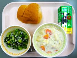 1月20日 ふじさわロールパン クリームシチュー あおなとじゃこのソテー 牛乳