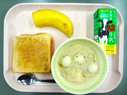 2月26日 セサミトースト うずらたまごのシチュー くだもの 牛乳