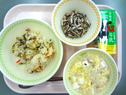 11月26日 とりにくとごぼうのおこわ アーモンドフィッシュ とうふスープ 牛乳
