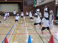 あいにくの小雨のため、運動場での種目は19日に延期しました。本日(5日)は体育館での種目のみ実施しました。