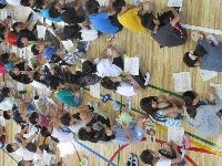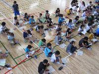 明日13日(金)からの1泊2日八ヶ岳宿泊体験学習に向けて、最後の全体指導が体育館で行われていました。