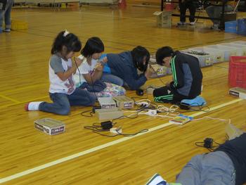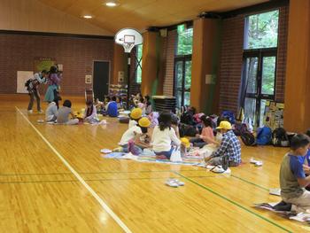 獅子岩での昼食は、体験教室の集会棟に場所を変更しました。グループごとに、雨も気にせずわいわい楽しい雰囲気でした。