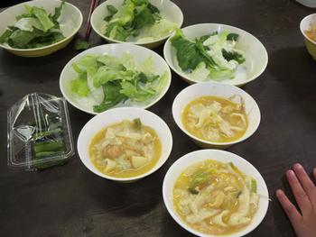 朝採りレタスのサラダと自分手作りのほうとうが、本日の昼食です。
