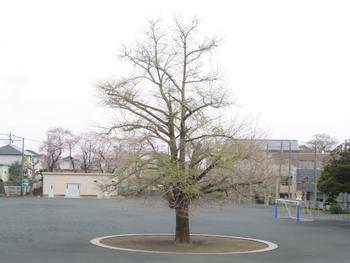 3.25(木)修了式 後ろの桜も咲いています。 4.5(月)入学式が行われました。芽吹きました。