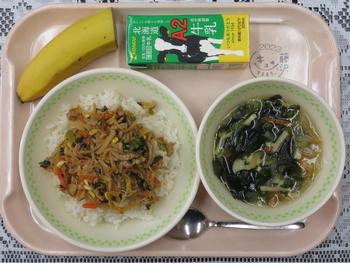 11.5(水)のメニューは、ビビンバ、わかめスープ、