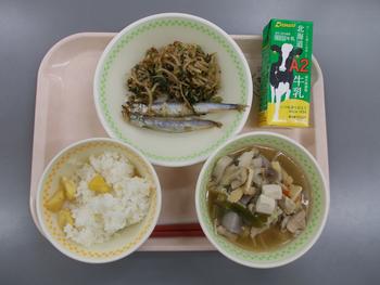 11.4(火)のメニューは、くりごはん、ししゃもの