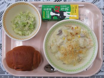 トグラタン、キャベツとじゃこのソテー、牛乳です。