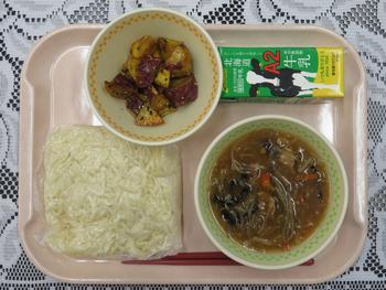 ラーメン)、大学いも、牛乳です。