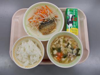 さわらのみそ焼き、ゆで野菜、よしの汁、牛乳でした。