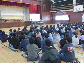 12.17(水)5校時体育館で、4~6年生と御所見中1・2年生(ライブ配信)に向けた、教育講演会が行われました。講師は、横浜国立大学教授 池田 敏和 先生です。