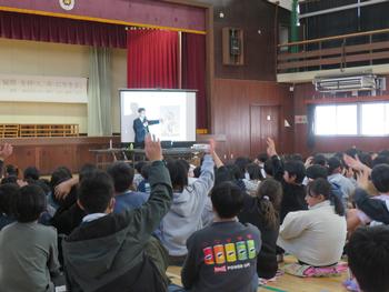 演題「自然から学ぶ、疑問を持つ、共に生きる」のもと、様々な例から子どもたちにとても分かりやすく、子どもたちの反応を見ながらお話をしていただきました。これが大切と教えるのではなく、子どもたちが自ら考えて、それぞれの答えを出すような、とても深い内容で大人の私もとても勉強になりました。
