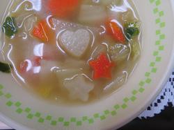 ープには、御所見産の旬の野菜(大根、にんじん、白菜、