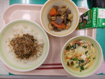 いりどり、かきたま汁、牛乳でした。