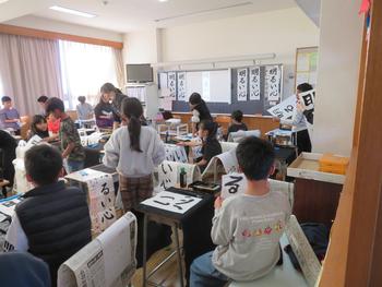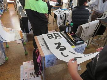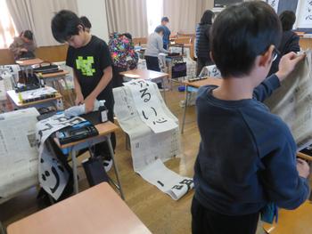 1.16(金)午前中教室で、4年生が「書き初め」を行いました。すでに、9(金)と14(水)に5年生と6年生が体育館で、5くみが教室で「書き初め」を行い、教室前のろう下に展示してあるものもあります(懇談会の折等にご覧ください)。子どもたちの集中した真剣な顔が、印象的でし。新年の伝統行事として受け継いで行きたいですね。