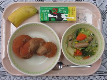 ウインナーと野菜のスープ煮、バナナ、牛乳です。