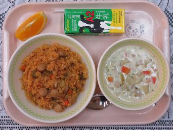 1.19(月)のメニューは、ジャンバラヤ、あさりの