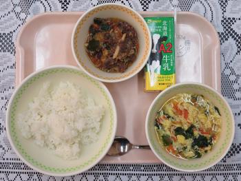 わかめとたまごのスープ、牛乳です。