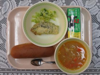 だらの香草パン粉焼きは給食初登場です。白身のたらの