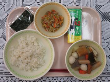 2.2(月)のメニューは、ごはん、焼きのり、おでん、