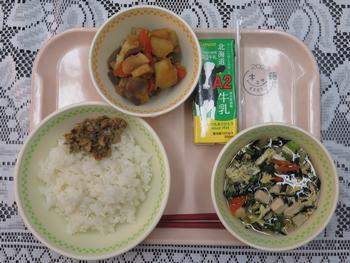 2.9(月)のメニューは、ごはん、あげじゃがいもの