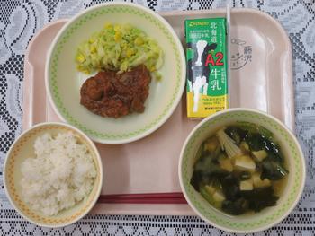 2.20(金)のメニューは、ごはん、ハンバーグのブ