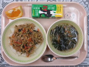 2.27(金)のメニューは、ビビンバ、わかめスープ、