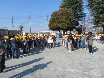 3.12(木)8:40から校庭で、4年生の集会委員により、1~5年生が6年生に感謝の気持ちを伝える「お別れ式」が行われました。この式が、今年度全校児童が一堂に会する最後の集まりとなりました。1~5年生からは、感謝の言葉と合唱が6年生に贈られました。心のこもった、とてもあたたかな「お別れ式」でした。最後はいつまでも手をふっていました。