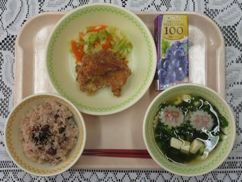 3.17(火)のメニューは、お赤飯、とり肉のからあ